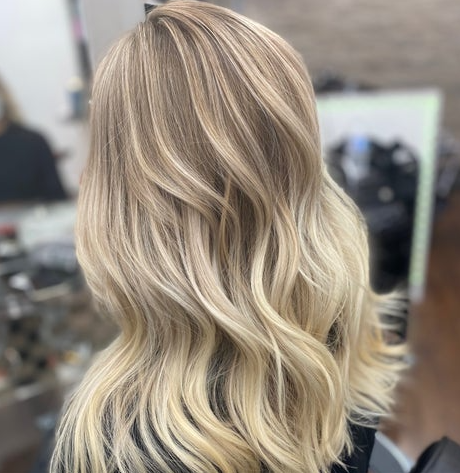 A double-process color application with bleach is used to cover regrowth up to 2 inches between lighten and tone services. Please note that the prices displayed are for short hair only. *Services prices may increase based on the length, texture, thickness, and density of your hair. -
